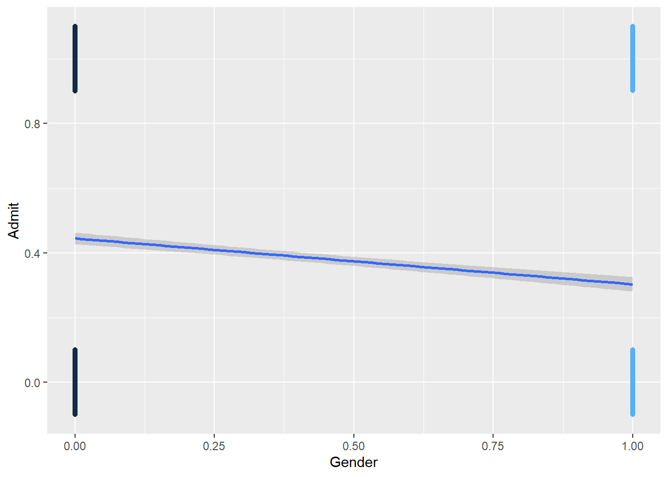model <- glm(Admit ~ Gender, family = binomial, data = dat)