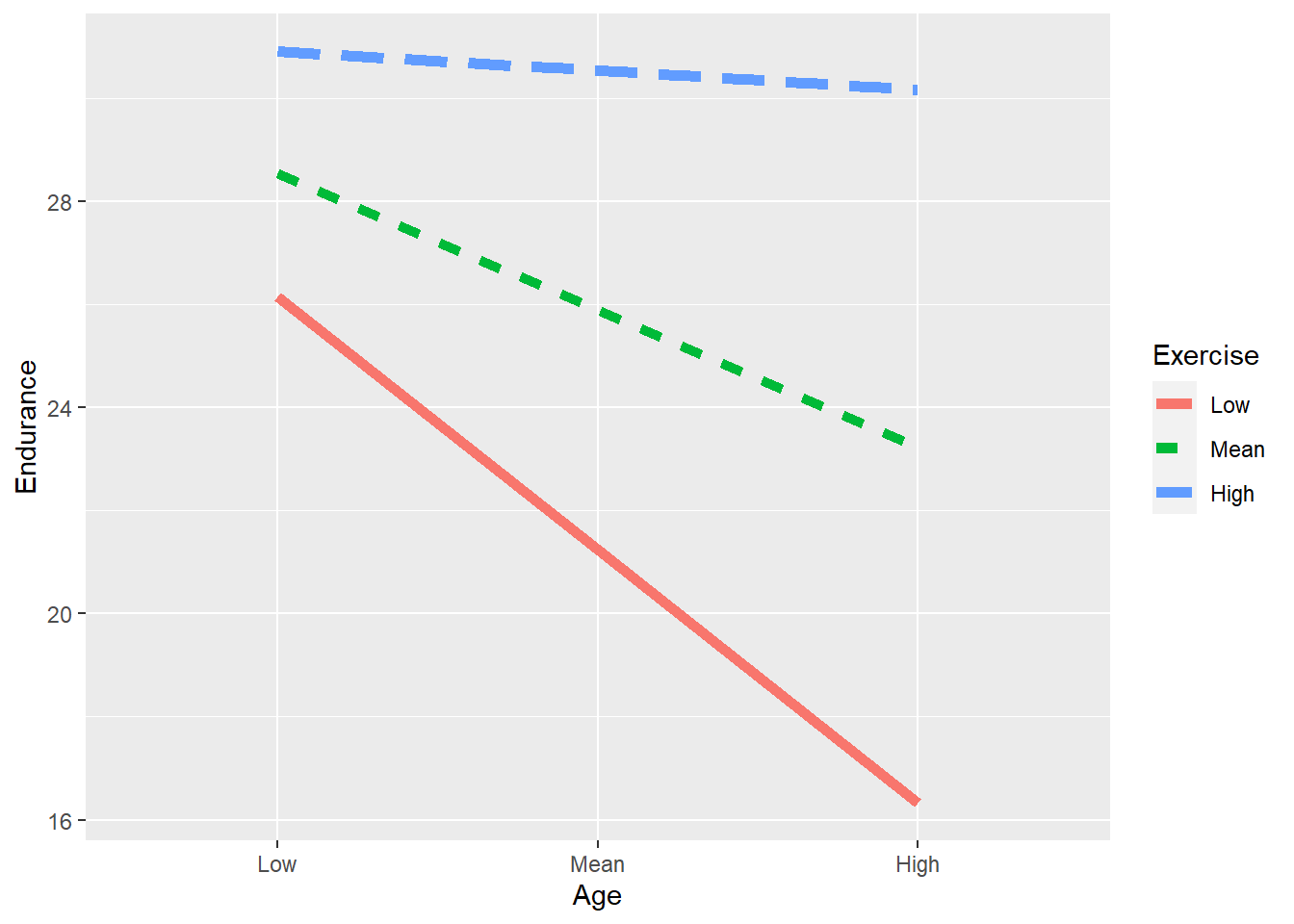 • For example, if we wanted to regress Endurance on Age, Gender (male = 0 vs. female =1), and Age*Gender, we would center the age variable and multiply that centered age variable by the gender variable: